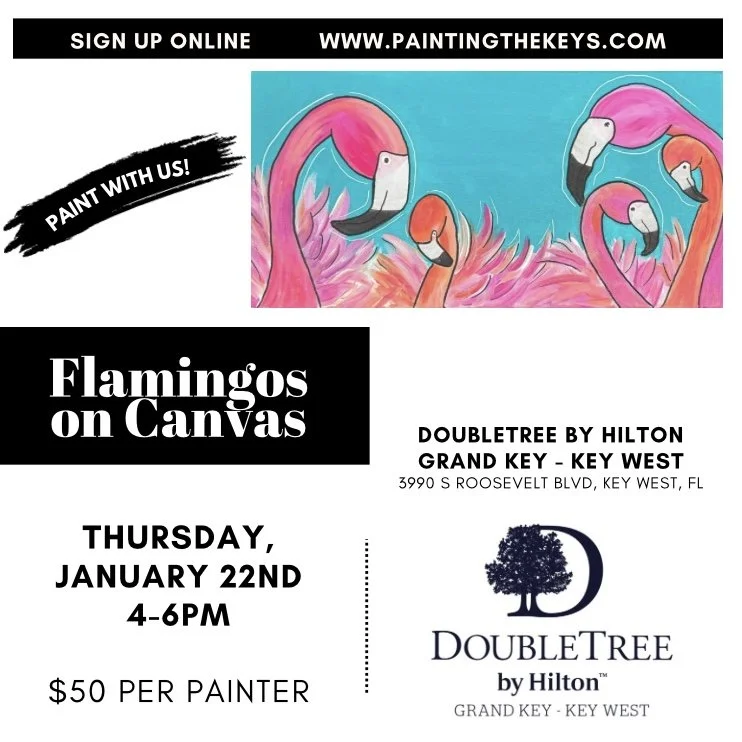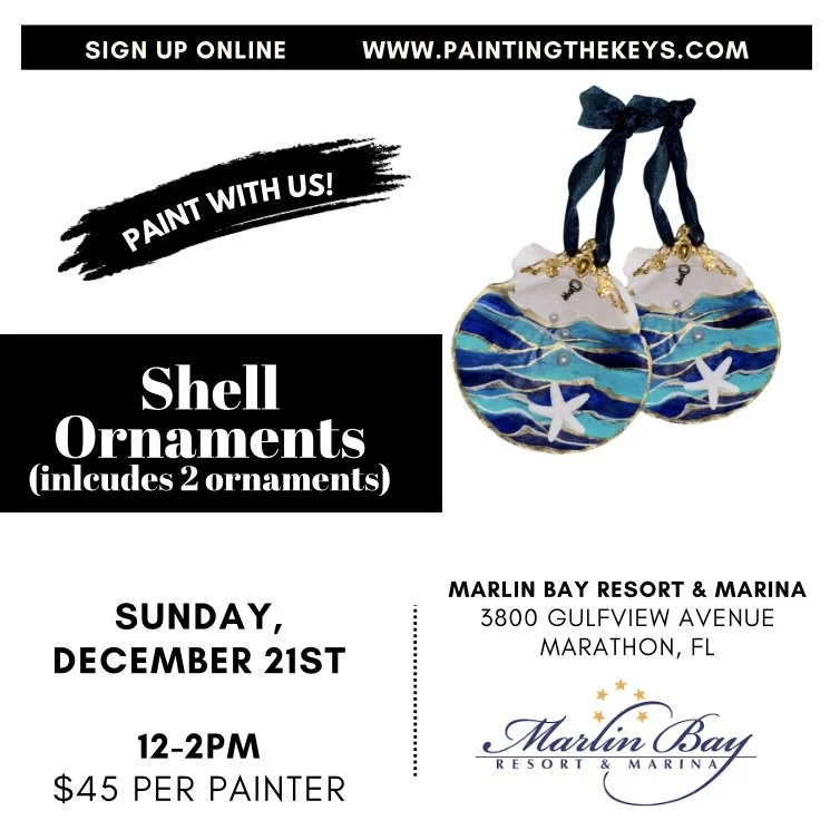 Double Tree by Hilton - Flamingos on Canvas - January 22 $50.00 Marlin Bay - Shell Ornaments - December 21 $45.00 Double Tree by Hilton - Holiday Palms on Canvas - December 21 $50.00