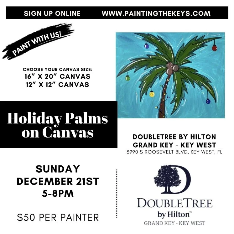 FL Keys Classes › Double Tree by Hilton - Holiday Palms on Canvas - December 21 Image 1 of 1 Double Tree by Hilton - Holiday Palms on Canvas - December 21 $50.00 Canvas Size: 16” x 20” 12” x 12” Quantity: Add To Cart Added!